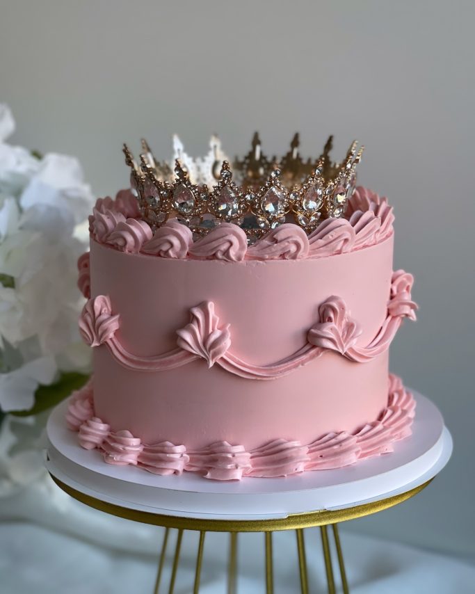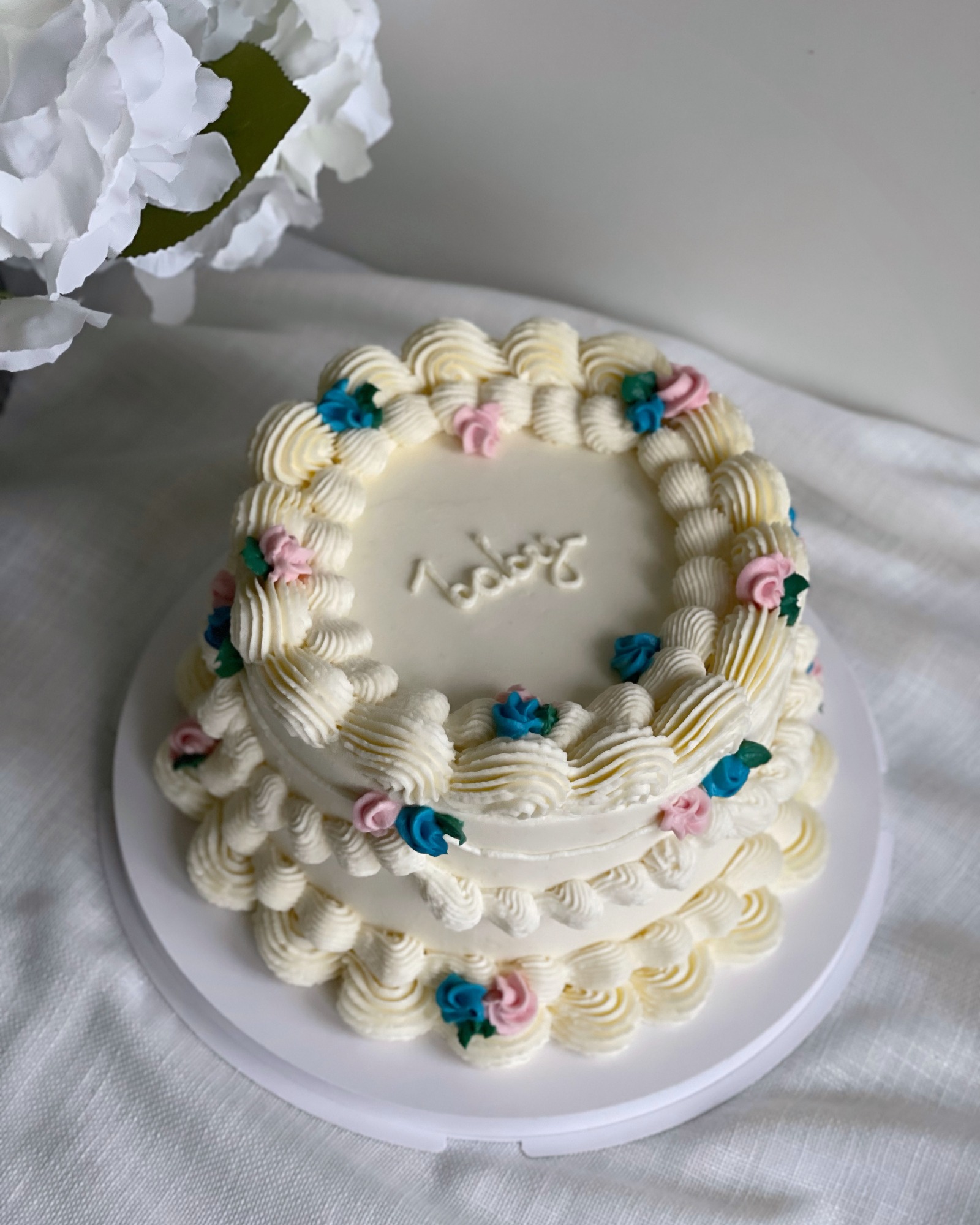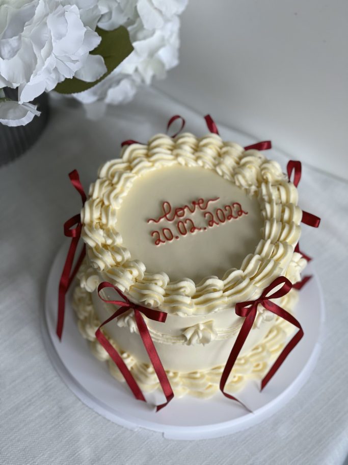 Klassiska tårtor med lyxiga, detaljerade krämdekorationer i engelsk vintage-stil.